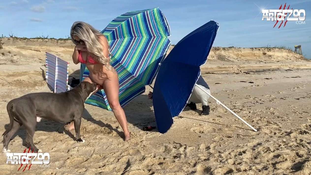 沙滩上露出被狗狗狂插内射两次